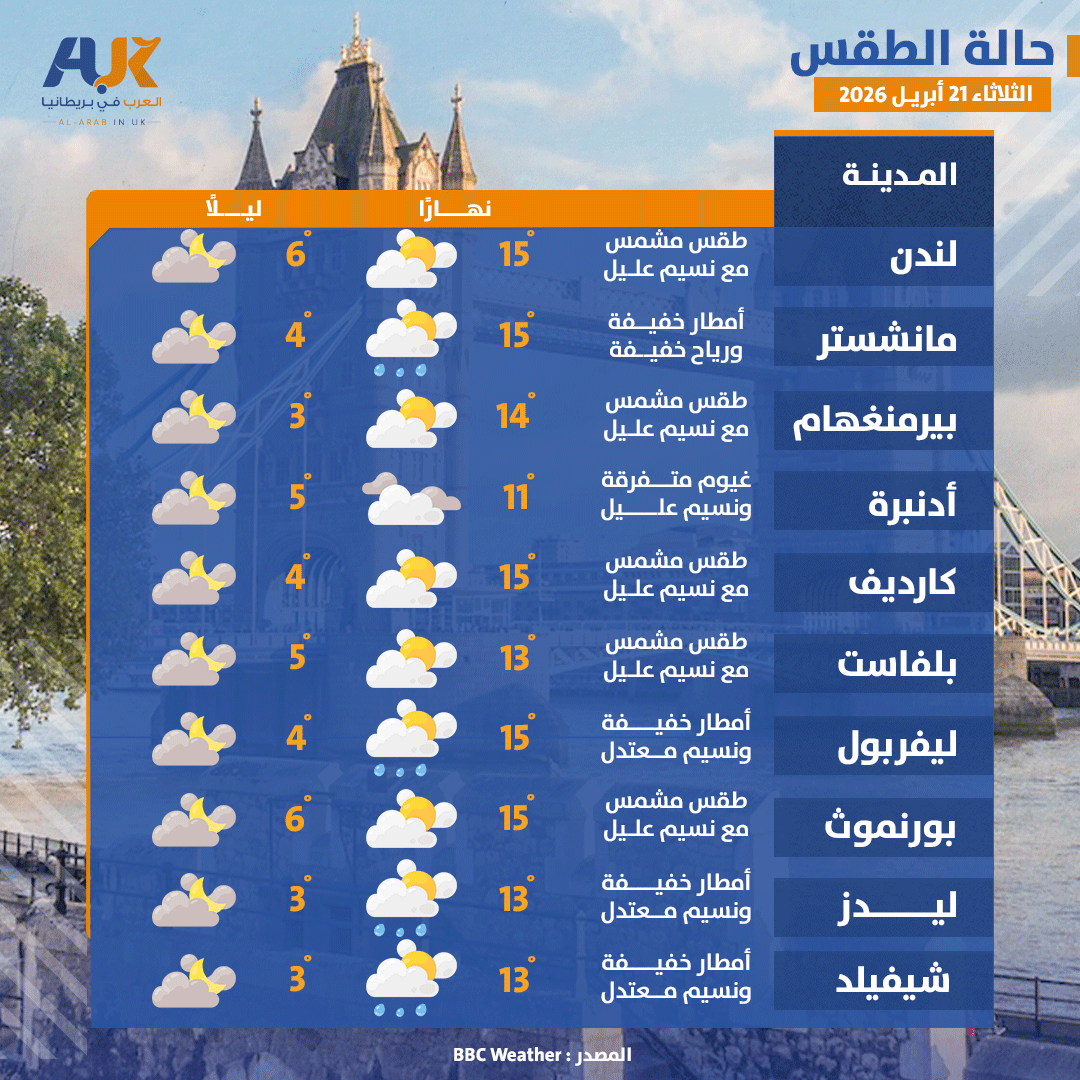 نضع بين أيديكم خريطة الطقس وأسعار الصرف في بريطانيا لهذا اليوم🌤💷 إليكم تحديثات الصباح👇 #العرب_في_بريطانيا #AUK